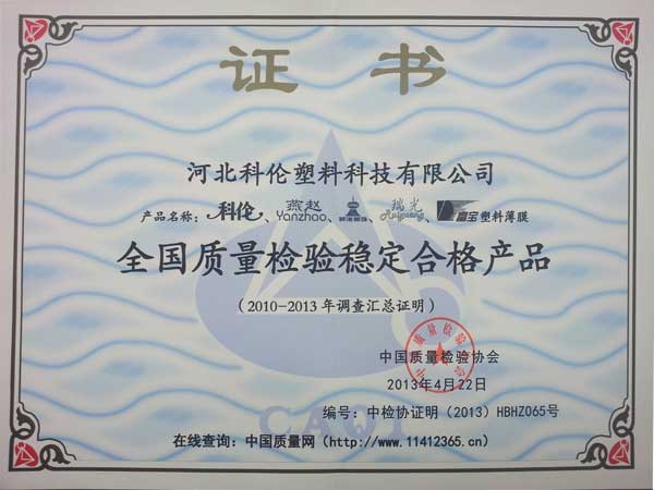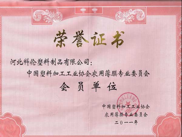 Over the years, the Company has always been sticking to the purpose of "meeting the users' demand to the maximum" and abiding by the brand concept of "Relying on quality and technology to improve brand value, and creating a Chinese well-known trademark”. It has successively established a long-term technical cooperative relationship with many R&D institutions, including Beijing Chemical Industry Research Institute, China Agricultural University, etc. The product quality keeps improving and the marketing network spreads all over the country. The Company and its products have successively won the “Stable Qualified Products in National Quality Inspection”, “Hebei Famous Products”, “Hebei High-quality Products”, “Hebei Consumer Trustworthy Products”, “Hebei Light Industry Excellent Enterprise”, “Handan Agricultural Industrialization Leading Enterprise”, “Quality and Reputation Demonstration Unit in Chinese Light Industry”, “Hebei Consumer Trustworthy Unit” and other honorary titles, and the product trademark “Kelun” was appraised as “Hebei Famous Trademark” and “Hebei Best Seller in Light Industry”. Besides, the Company also is a member unit of CPPIA, and the vice president unit of the “Agricultural Film Sub-Committee of CPPIA”, enjoying pivotal status in national agricultural plastic film industry.
